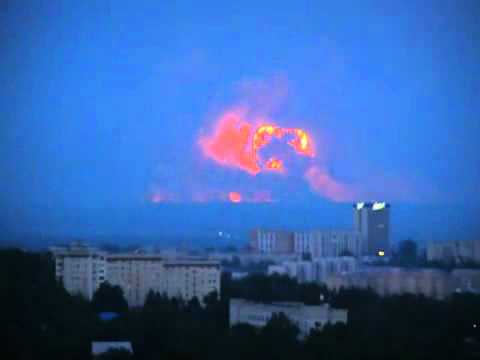 - On the scene footage from an explosion at an arms depot in in the Volga region of Udmurtia, Russia.